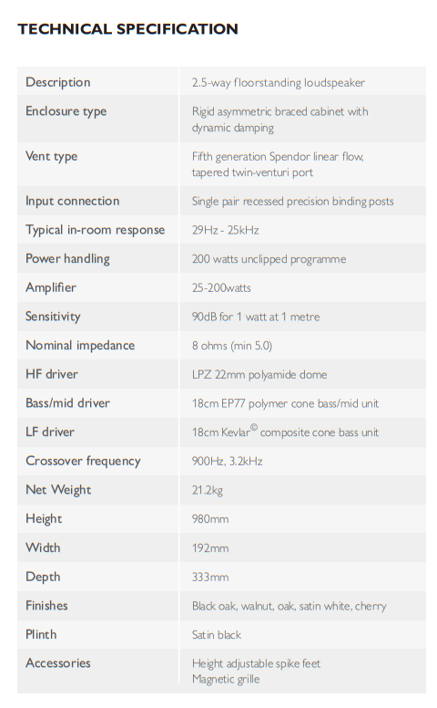 • El exclusivo tweeter LPZ de 22 mm, junto con el altavoz de graves/medios de 18 cm con cono de polímero Spendor EP77 y el altavoz de graves con compuesto de Kevlar, permiten al D7.2 ofrecer un sonido envolvente, con voces puras, graves rápidos y limpios, gran precisión y una excelente expresión dinámica.